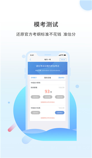 5、会计模拟考试,提供和正式考试一样的模拟考试系统,考前充分准备,让你上场不惊慌!