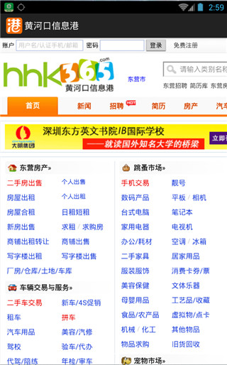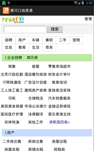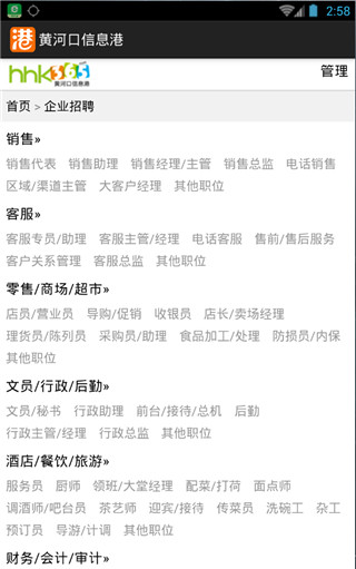 1、招聘,黄河口信息港海量的求职招聘信息,最细致化的分类;