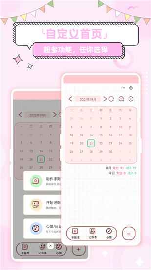 天天手账app界面真的非常滴可爱,从来对记账记事都没兴趣的我也每天都忍不住打开软件记录,我的朋友喜欢玩换装游戏看见我用这款软件那么漂亮就一直问我这是什么软件,非常真的使用哦。