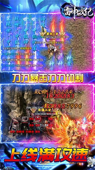 雷神战纪最新版是一款十分火爆的角色扮演类传奇手游,这款游戏内融合了多种玩法元素,经典的画面,为玩家还原了最真实的传奇类游戏场景,让你体验到原汁原味的传奇手游玩法,游戏内有三大战法道职业任你选择,玩家可以在这庞大的地图上,开启最为刺激畅快的战斗冒险,随心所欲的对决PK,提升自己的实力技能,任意开启冒险战斗,丰富的养成类玩法,玩家可以畅快感受精彩战斗玩法,更能体验到万人同台竞技,一起开黑战斗,还有大量道具装备等你来使用,快来探索更多副本任务,开启精彩的游戏体验吧!