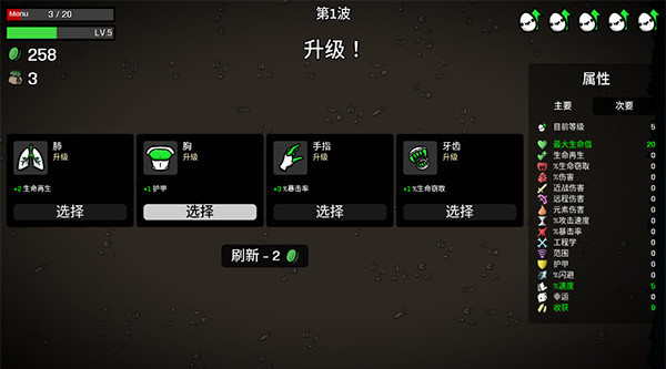 治安环 关卡结束+3%伤害 (前中期拿、后期价格高不合算)3、brotato手机版后期堆生存必拿道具