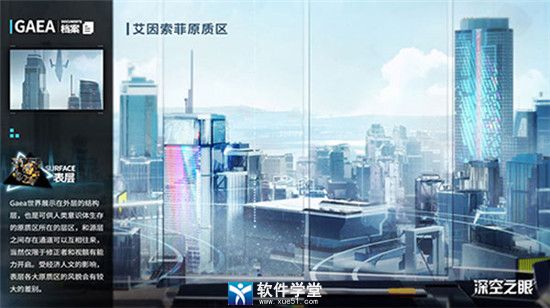 Gaea世界展示在外层的结构层,也是可供人类意识体生存的原质区所在的层区,和源层之间存在通道可以互相往来,当然仅限于修正者和视骸有能力开启。 受经济人文的影响,表层各大原质区的风貌会有较大的差别