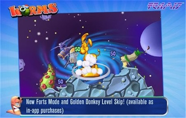 百战天虫手机版是一款非常有趣的战争策略游戏,由在steam上十分受欢迎的同名游戏移植而来。游戏采用高清画面,却是卡通风格,搭配在游戏让我们的小虫显得更加可爱。在百战天虫手机版游戏中我们可以控制我们的小虫移动与瞄准发射,这些活动都需要消耗活动点,当你的活动点清零后将由你的对手行动。游戏中我们需要控制小虫瞄准敌人发射子弹将他击败,或是通过移动躲避敌方的攻击游戏中含有超多风格不一的武器,猎枪、乌兹冲锋枪、火箭筒、手雷等现代武器甚至还有绵阳炸弹、喃喃自语的老太太、香蕉手雷等奇怪的武器。游戏内含丰富的关卡,每个关卡的敌人都有不一样的武器,你可以通过找出敌方武器的弱点来进行躲避。然后瞄准敌人将其炸飞。你还能将敌方脚底的地形炸开,让敌人掉入深渊,当然了你也必须小心你的脚底。感兴趣的朋友们赶快加入这场极具破坏力的对决吧。