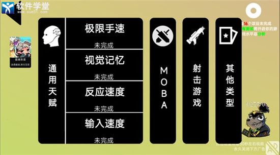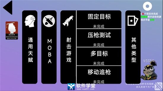 我的游戏天赋正版是一款测试和提升游戏天赋的游戏,玩家想要提升哪方面的能力就选择对于的模式进行游玩,也往后越难,提升水平的速度也会更着游戏的难度得到提升,如果你也想提升自己的水平就快来下载这款游戏吧。