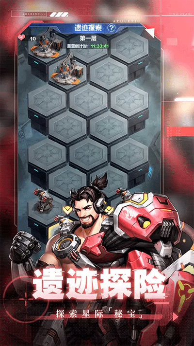 在遗迹探险中,指挥官们可通过选择格子前进,路上会有敌人、支援站、补给站等,击败敌人可获得遗迹币与加强技能,选择支援站可获得强力支援英雄(遗迹内生效),进入补给站可以回复基地血量。打过每一层的boss还可进行勋章转盘抽奖,主要产出勋章类相关道具。