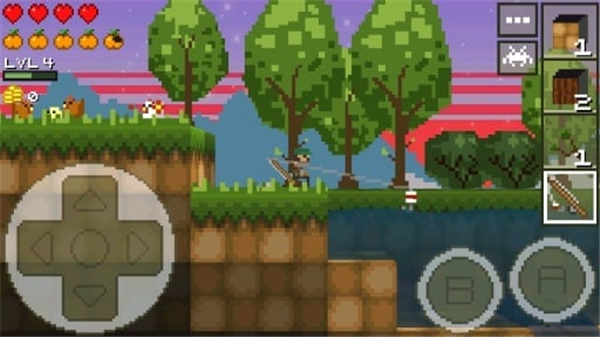 操作方式只有一个横屏界面,但该游戏有两个,也就是想要获得第二个界面的东西就必须按住上箭头;连续点击两次跳跃可以进行二次跳跃,放置的物品的话点住物品脱出可以看到网格就可以放了,必须放在空地上。