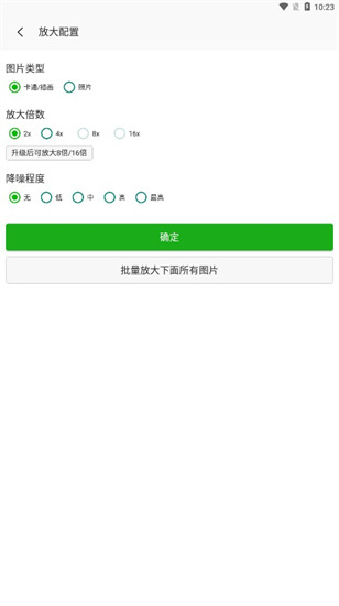 3、点击开始后,在缩放配置中选择图片类型、放大和降噪程度,登录后可以放大到8倍和16倍