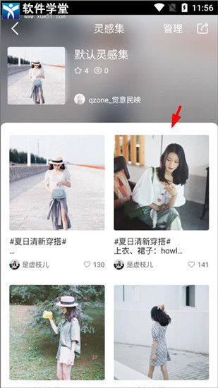 4、打开美丽说app灵感集页面,用户即可查看已收藏的穿搭推荐内容