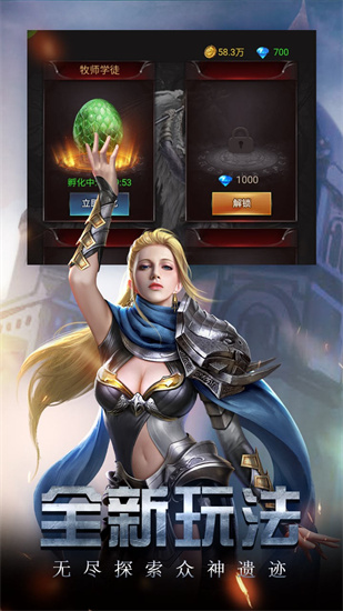 3、百变伙伴,女神迎新。百变伙伴陪伴,多种伙伴养成,提升玩家战力,升级打怪竞技PK,全程陪护玩家!