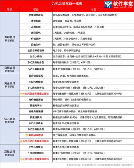 会员等级分为普通会员、青铜会员、白银会员、黄金会员、钻石会员、双钻会员。各等级会员权益如下表所示: