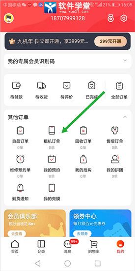 6、可前往我的页面下点击【租机订单】查看订单情况