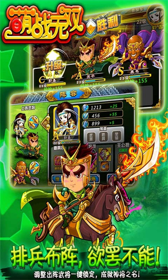 萌战无双hd官方正版全部武将二次元化,不断招募收集来组建你的队伍,搞笑的剧情,刺激的技能战斗,游戏上线即送免费VIP,每天登录即可连抽,顶级武将组合免费送,赶快下载体验吧!