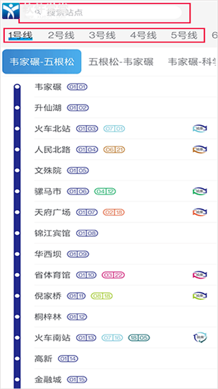 2、选择你想要了解的站点,你可以通过搜索,也可以选择线路进行查找;