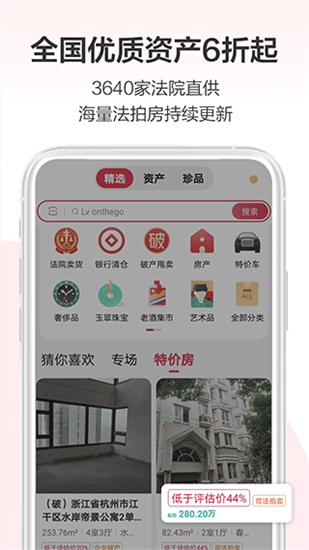 来自法院、公安、银行等特殊渠道资产,远低于市场价起拍,不限购可贷款法拍房、1元起拍无保留价有鉴定证书汽车,公安刑事罚没资产1元起拍等。官方保真假一赔三,阿里实力平台保障。