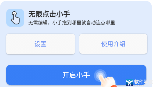 连点器一秒10000下安卓版是一款在我们日常生活中非常实用的辅助器,与闪指连点器用法差不多。这款软件能够帮助我们省去不必要的时间和精力,为用户提供了更多便捷的点击操作和滑动设置,还能让各种点击操作变得更加智能化。同时,该软件内还添加了多种点击辅助功能,让用户使用更加方便,帮助你实现快速点击。这款软件界面简洁,操作简单,拥有多种全新功能,用户可以在自己的手机上控制使用相关功能,即使是新手小白也可以轻松快速上手。本款软件旨在让用户们可以放心的进行各种点击的操作,为你带来超多的体验。各种高级设置,一键启用,不需要任何权限,即可为您提供完美的点击效果。并且该软件内还包含更多点击辅助功能的获取等。你可以一键设置,保存使用脚本,方便下次继续使用,还能可以帮助用户更快地完成一些简单但重复的操作,提高效率和方便性。甚至在用户游戏或者使用某些软件时,也能帮助你进行刷经验等操作,多种玩法功能,可以更好的帮助你解放双手。它可以在有需要的情况下提高效率,智能操作,便利广大用户,使用户更加便捷地完成某些任务,使用起来更加的方便。软件内简单的操作可以进行手势的添加,不需要root就可以直接运行,点击配套的参数,方便日后快速使用,并且此款软件十分安全有保障,不会有被封的风险哦,各位用户可以可以放心使用。还能支持大家支持应用到日常抢票或游戏中,可以为大家带来更多的便利。更有还有详细的新手教程,让用户操作更加简单好上手。连点器一秒10000下安卓版经典的用法十分方便,快来下载帮你解放双手吧!