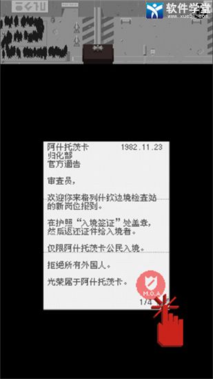 乐高无限游戏一样,本作玩法操作简单,并没有什么太难的操作设计,在这里玩家将扮演一名边境海关的检察官人员,我们每天的工作都可以检查各位入境人员的证件,检查确认证件真伪,是否符合入境规定,并根据上级指示拒签或逮捕违法入境者。虽然游戏看上去很简单,就像是一款独特的找不同游戏,但等你真正进入游戏就会发现并没有这么容易。游戏还会根据玩家每天放入的人数和正确/错误来获得对应的奖励惩处,而各种各样的入境人员会千方百计的使出他们的造假手段,从简单的信息造假到X光下的各类违禁物品等等都十分考验玩家们的眼力。而且随着游戏进程推荐,难度也会随着增大,甚至在我们的日常盖章中,还将面临很多人性的考验与抉择。总的来说,请出示证件中文版游戏是一款非常值得体验的休闲模拟小游戏,它还可支持简体中文语言,感兴趣的朋友可以来试试!
