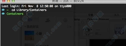 2、输入命令:rm -rf Library/Containers/com.xiami.Shark/,按enter键;