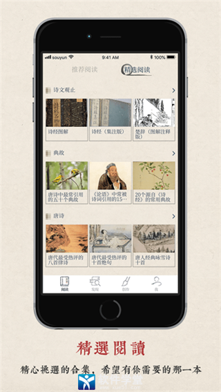 不仅提供精选的作品赏析,还能通过专题推荐、热门搜索等功能,帮助用户发现更多有意思的内容。用户可以通过搜韵的推荐和导航功能,开启一段充满文学艺术之旅。