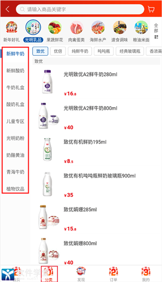 3、你也可以按照分类选择牛奶火者其它奶制品,还支持超多食品的搜索查找