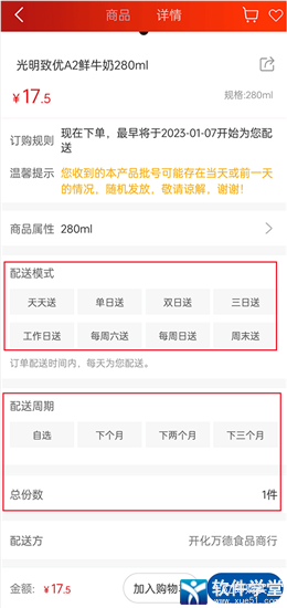 4、在光明随心订牛奶官方版中选择好产品后填写配送信息即可