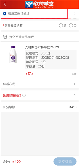 5、随后填写收获地址进行支付就可以等待你的牛奶上门啦