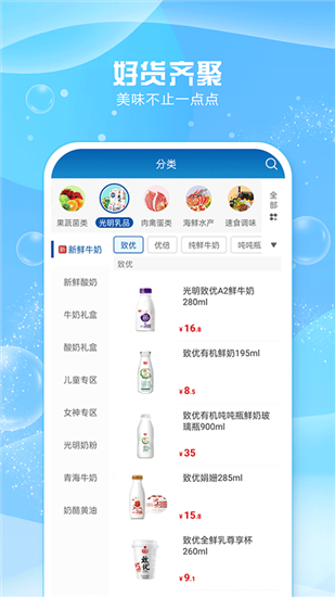 1、软件提供光明牛奶的线上订购、支付和配送服务,让用户可以方便快捷地购买到新鲜、优质的牛奶