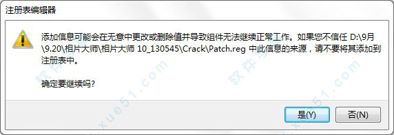 2、回到软件安装包解压Crack.rar压缩包,打开文件夹双击运行“Patch.reg”破解补丁,导入注册表信息,点击“是”