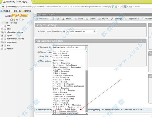 3、点击三角后会弹出这条语言选择框,选择图中的中文选项。