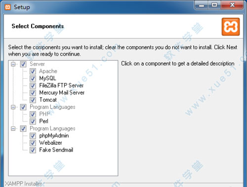 3、点击next;看到以下界面,你可以根据自己的需求选择要安装的软件。