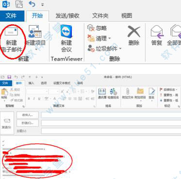 4、在软件主界面点击“新建电子邮件”,即可看到新邮件默认已经把我们刚才编辑的签名添加在邮件末端了。