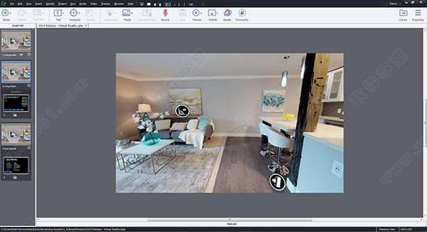 Adobe Captivate 2019发布了,新版本2019得到了大幅度的优化,使用起来将更佳的人性化,智能按钮功能的出现让你只需一次点击就可以将图像变成按钮,为您的远程学习课程增添时尚的交互式元素;360⁰ 学习体验,让学员探索他们周围的事物,在环境中积极互动,加强记忆。实现复杂的学习用例,如合规协议的实际运用、虚拟演练、逼真的产品演示等;实时设备预览功能可以帮助你生成QR码,让你精确地看到远程学习内容在学员VR设备上的播放情形,并且你还可以使用移动设备扫描该码,在您的设备