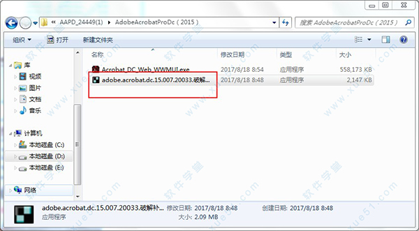 4、回到软件安装包将“adobe.acrobat.dc.15.007.20033.破解补丁-patch.exe”破解补丁复制到软件安装路径下
