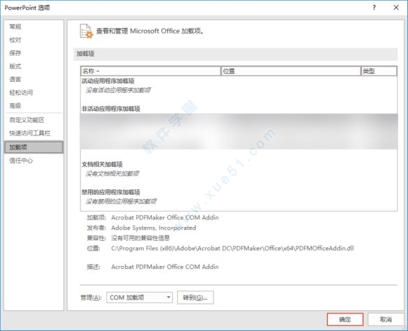 Office 2010/2013/2016:文件 » 选项 » 加载项 » 管理:COM 加载项 » 转到 » 打开 COM 加载项窗口