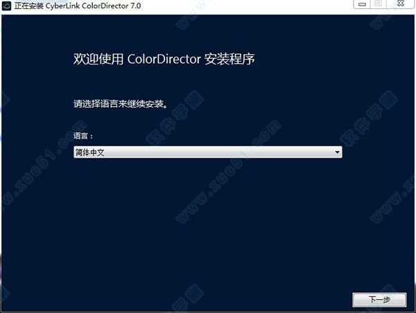 2、双击“ColorDirector_7.0.2103.0_Ultra.exe”主程序运行,在语言栏中选择【简体中文】,然后点击“下一步”。