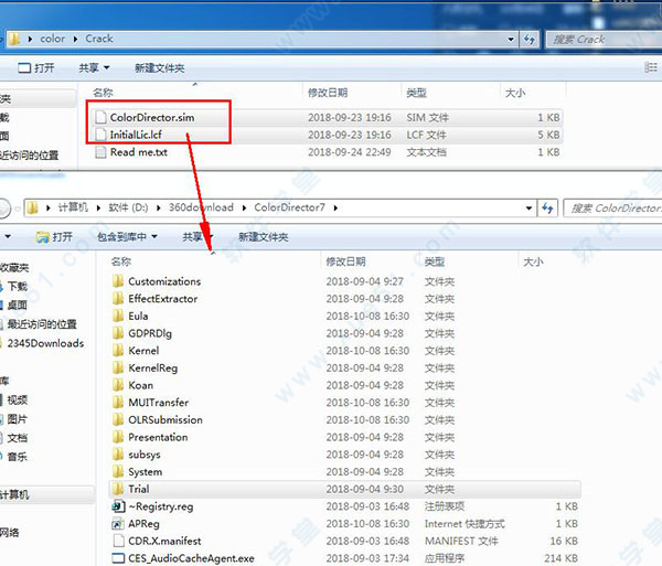 1、安装完成后,在Crack文件夹下找到“ColorDirector.sim”与“InitialLic.lcf”两个破解文件。