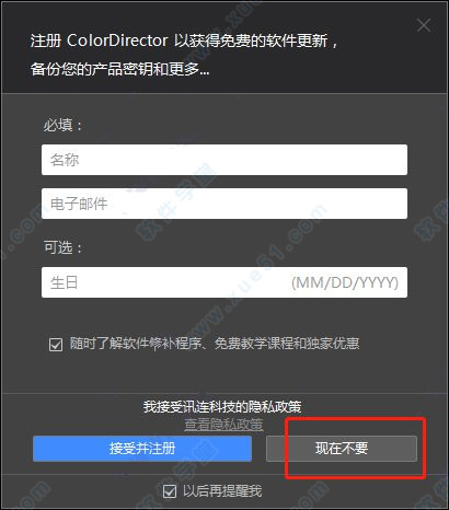 3、打开软件,提示你要注册不要管他,直接点击“现在不要”即可。