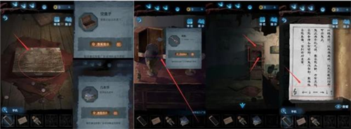 6、从放下的梯子上到第四间,点击墙上的报纸,获取第二间梁少平木偶人的姿势线索;回到第三间,翻阅木架上的书获取操控木偶具体肢体的孔位;点击操控板左边的2、3、4、5孔位的线和右边1孔位的线;回到第二间,点击并获取地上的琴弓和木盒;木盒上有第二个小人,记得取下。