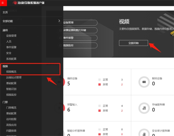 1、在海康互联(配置端)首页中,选择【视频】,可切换到【视频概览】
