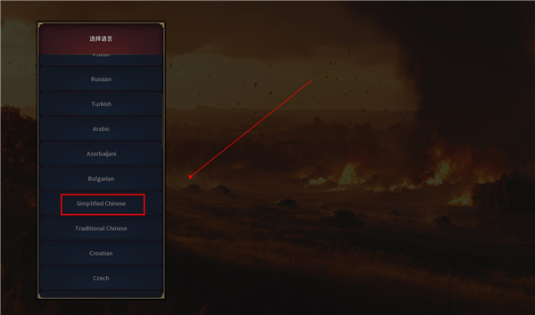 3、然后进入游戏语言设置,选择Simplified Chinese。
