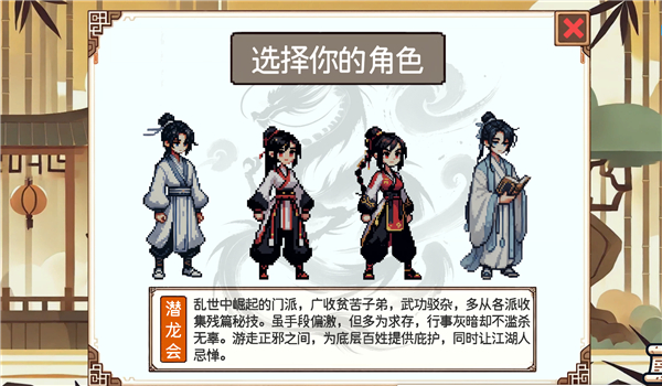 简单的游戏操作,丰富的剧情与策略流派玩法,让你的每一次冒险都充满趣味性。并且游戏还提供了多种角色选择,每一位角色其属性技能与玩法也都各不相同,玩家可根据自己的喜好任意选择冒险。通过不断探索与尝试,开创更多全新策略玩法。小小侠客模拟器游戏十分注重游戏策略,面对众多武学招式与成长方向以及更多随机生成事件,将带领玩家探索更多可能。