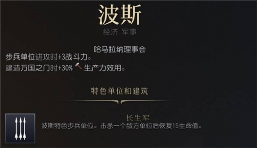 波斯特色步兵单位,击杀一个敌方单位后恢复15生命值。