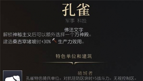 孔雀特色骑兵单位,对抗驻防区块时+5战斗力,无视控制区。