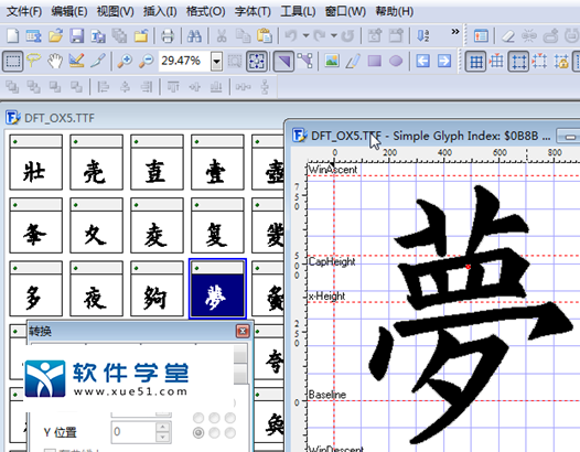 2、该软件让你可以创建和编辑你自己的真字体文件.特别推出包括转换(扫描 的)位图为真字体轮廓,因此让你可以创建你自己的符号,标识和书法的功能