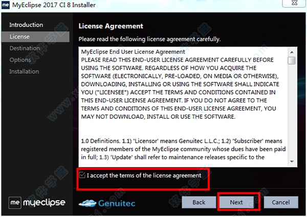 1、首先点击“myeclipse-2017-ci-8-online-installer-windows.exe”程序运行安装,点击“next”下一步;