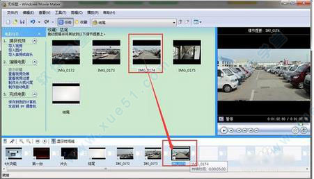 2、把我们的视频依次按照顺序导入到时间线上。直接鼠标拖放即可。