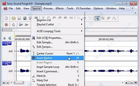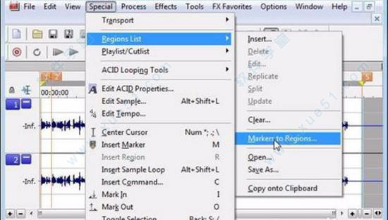 5、接着我们再选择菜单 Special - Region List - Markers to Regions,将 Mark 转换为 Region