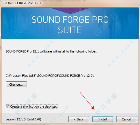 3、选择软件安装路径,可更改,也可默认,勾选“create a shortcut on the desktop”,然后点击“install”开始安装软件