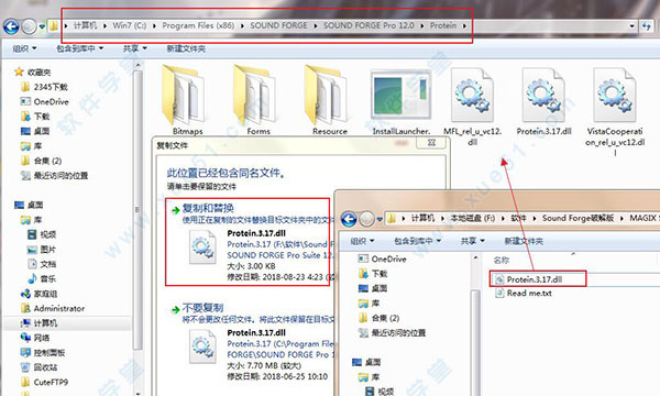1、接下来,对软件进行破解操作,回到软件安装包打开Fix x64文件夹,将破解补丁“Protein_x64.3.17.dll”复制到软件安装路径下,覆盖并替换源文件,选择“复制和替换”即可