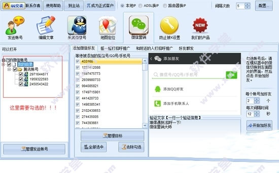3、用户可以搜索QQ号,加入QQ号,生成手机号,加入微信号。这些账号可以在后面的“添加微信好友”中使用。