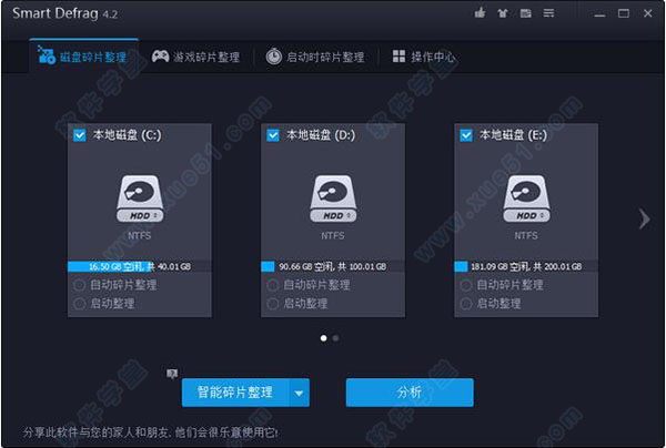 1、是什么?它是一款智能碎片整理工具,让您的硬盘发挥到最大的性能。随着新一代磁盘碎片整理引擎,智能碎片整理,不仅可以整理你的硬盘也可以调节你的SSD来提高你的电脑性能。